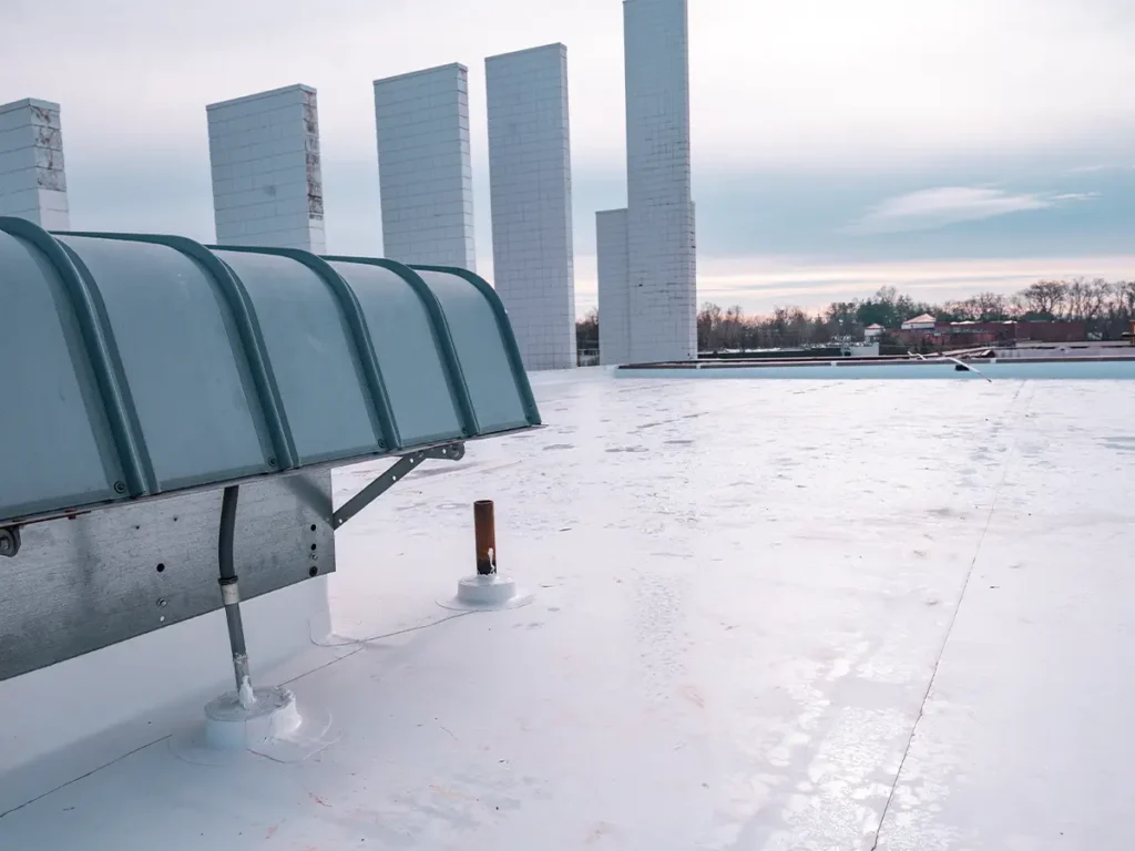 The bright white roof surface reflects sunlight, significantly reducing heat absorption and lowering cooling costs. Heat-welded seams create watertight protection superior to adhesive-based systems. We install commercial-grade TPO membranes meeting ASTM D6878 standards for lasting reliability.